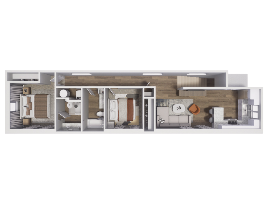 Rendering of type 2 apartment homes at the Cottages at Abbott Station.