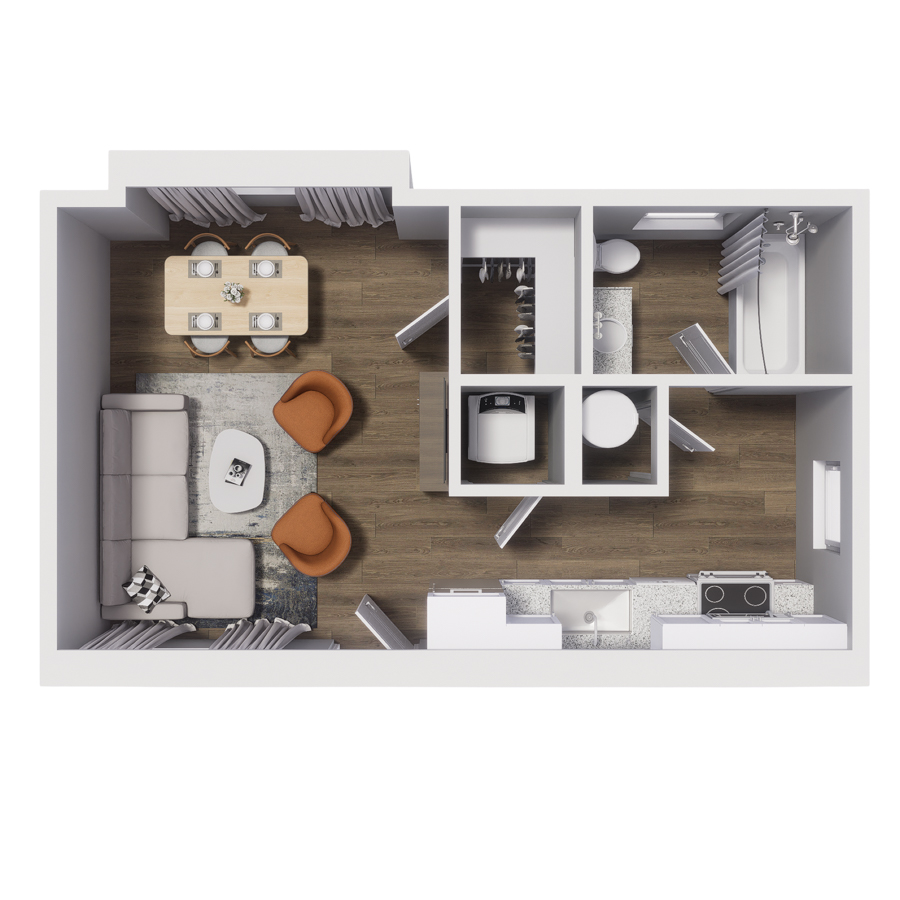 Rendering of type 2 apartment homes at the Cottages at Abbott Station.
