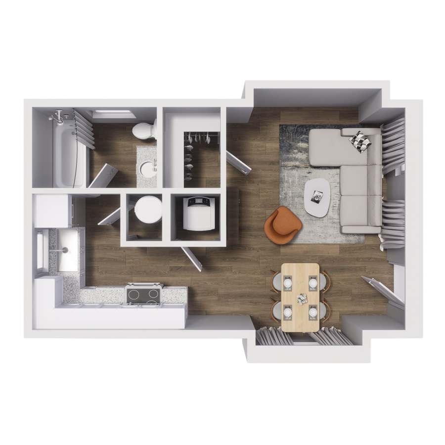 Rendering of type 2 apartment homes at the Cottages at Abbott Station.